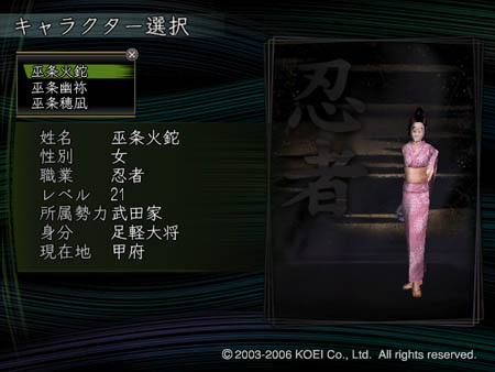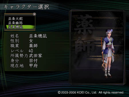 現在「薬師」「鍛冶屋」「忍者」の3キャラが稼動中で
